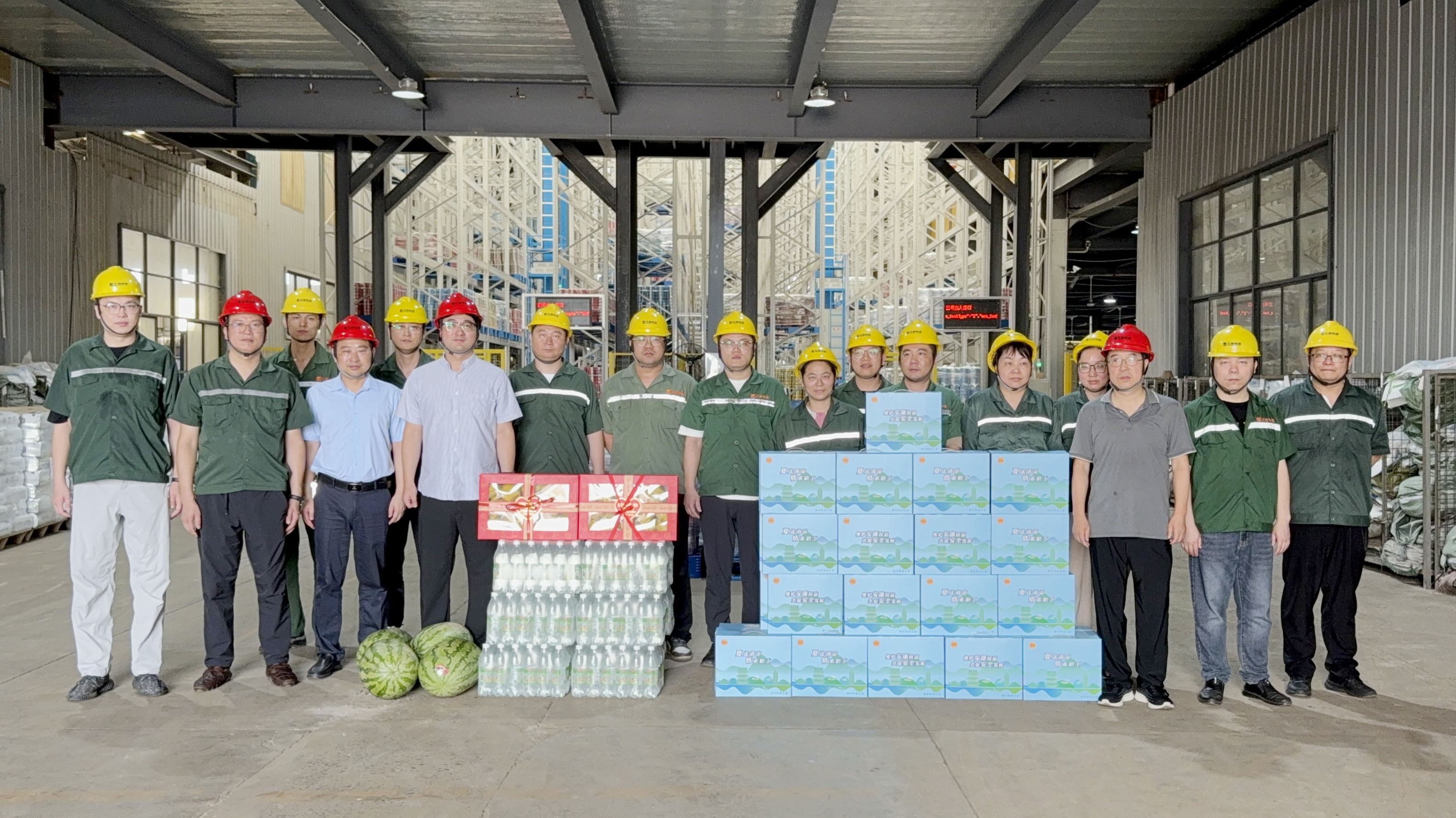 副總經理沈建國、副總經理芮放赴物流中心、成品倉庫送清涼