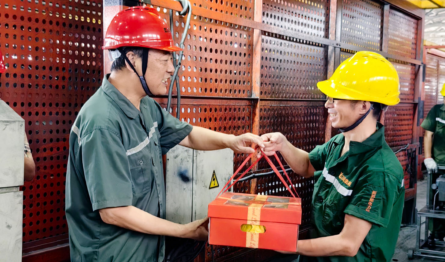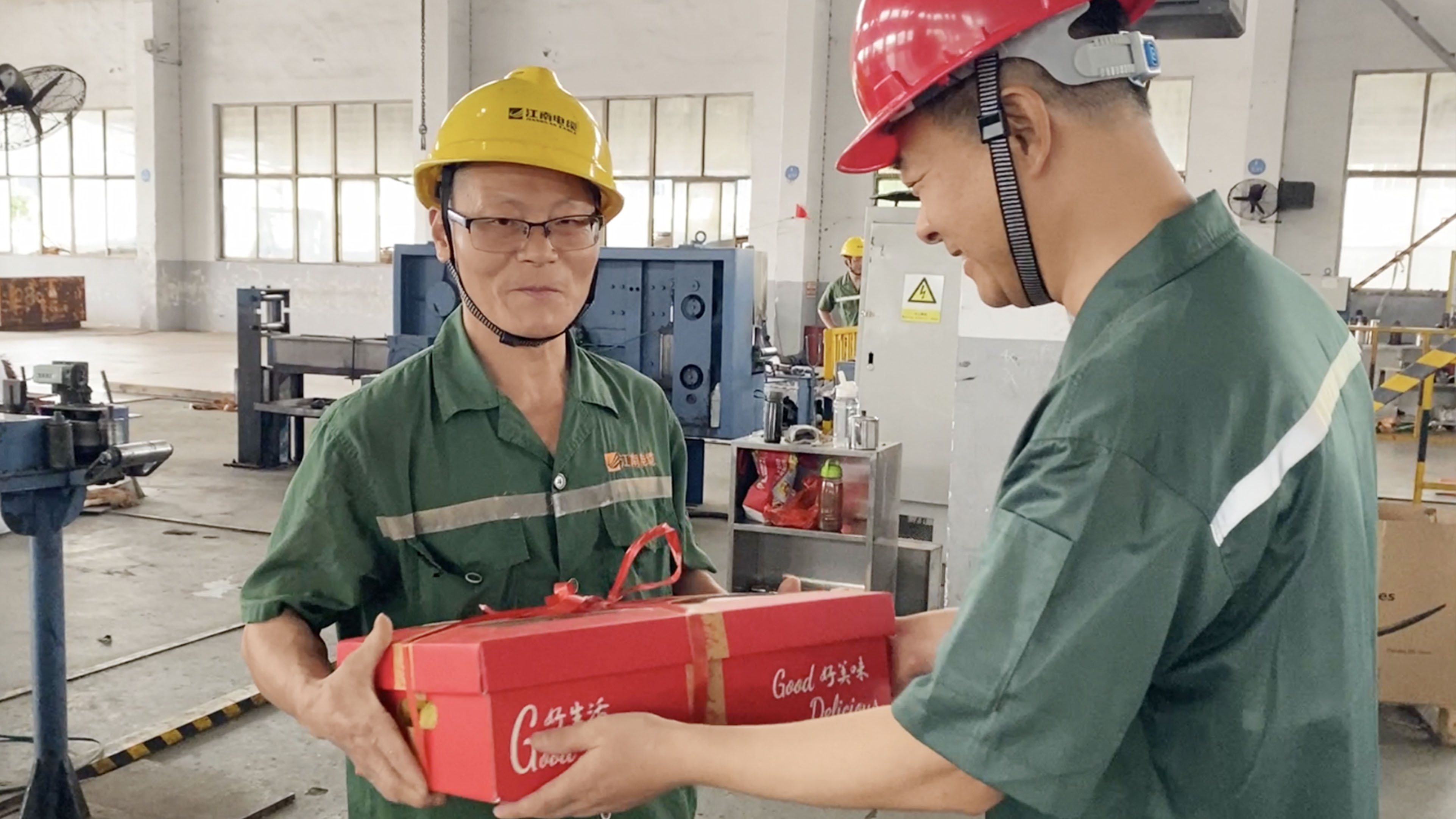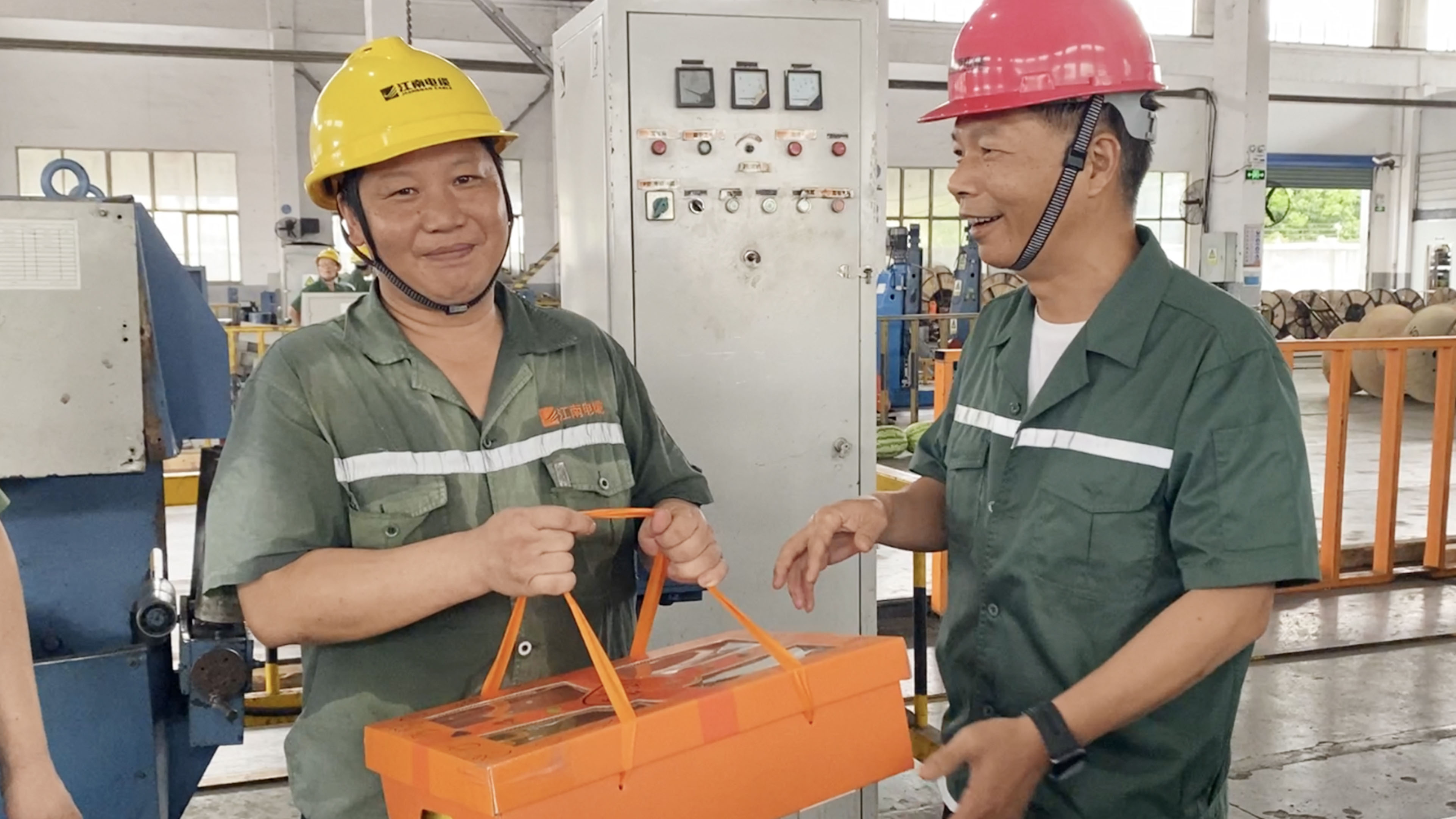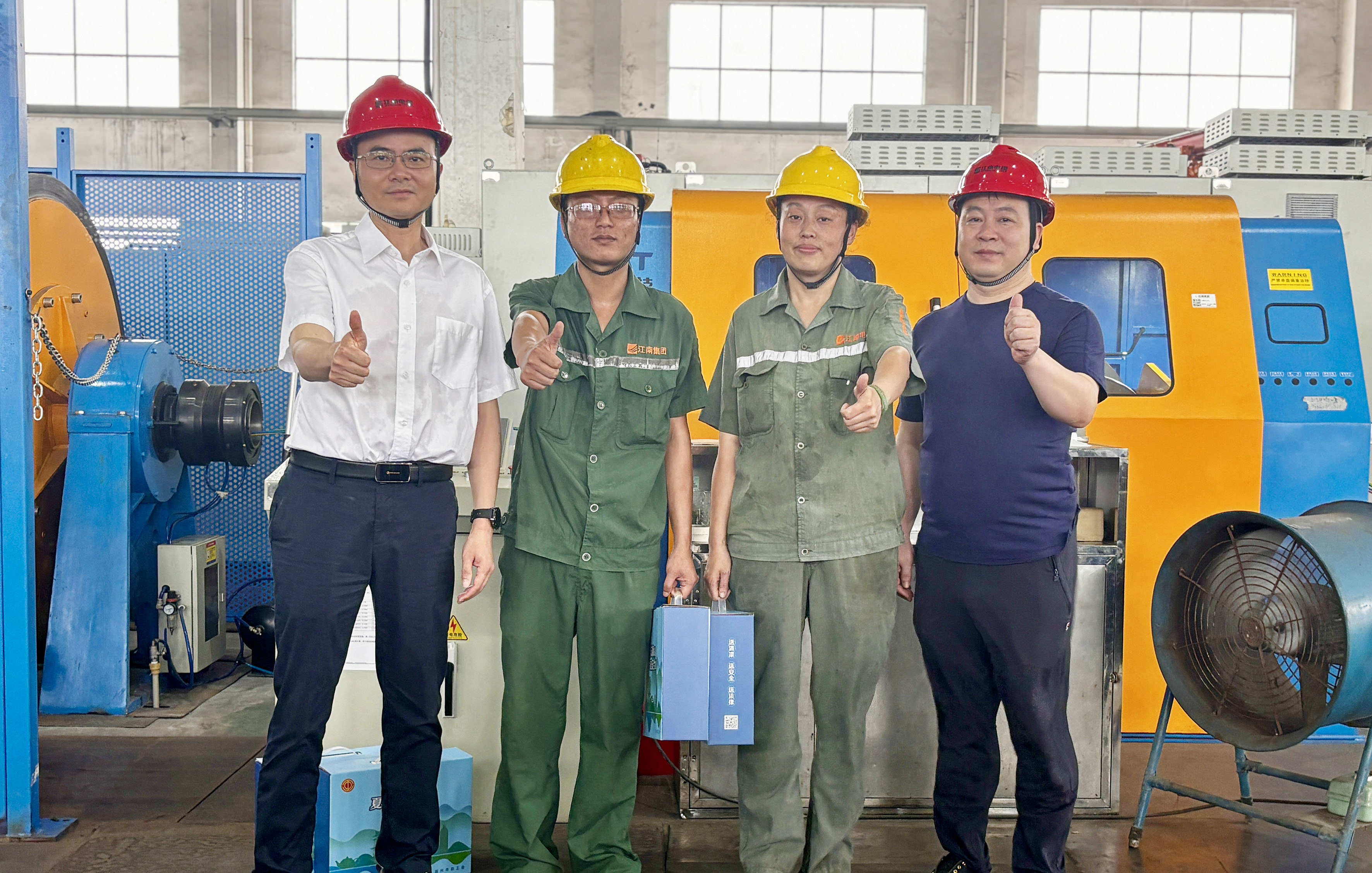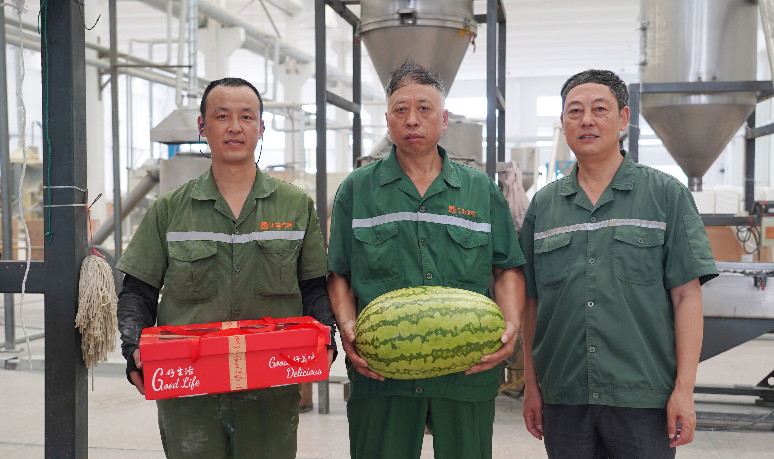 副總經理周駿、總經理助理陸建平赴防火鋁線電纜分廠九車間送清涼