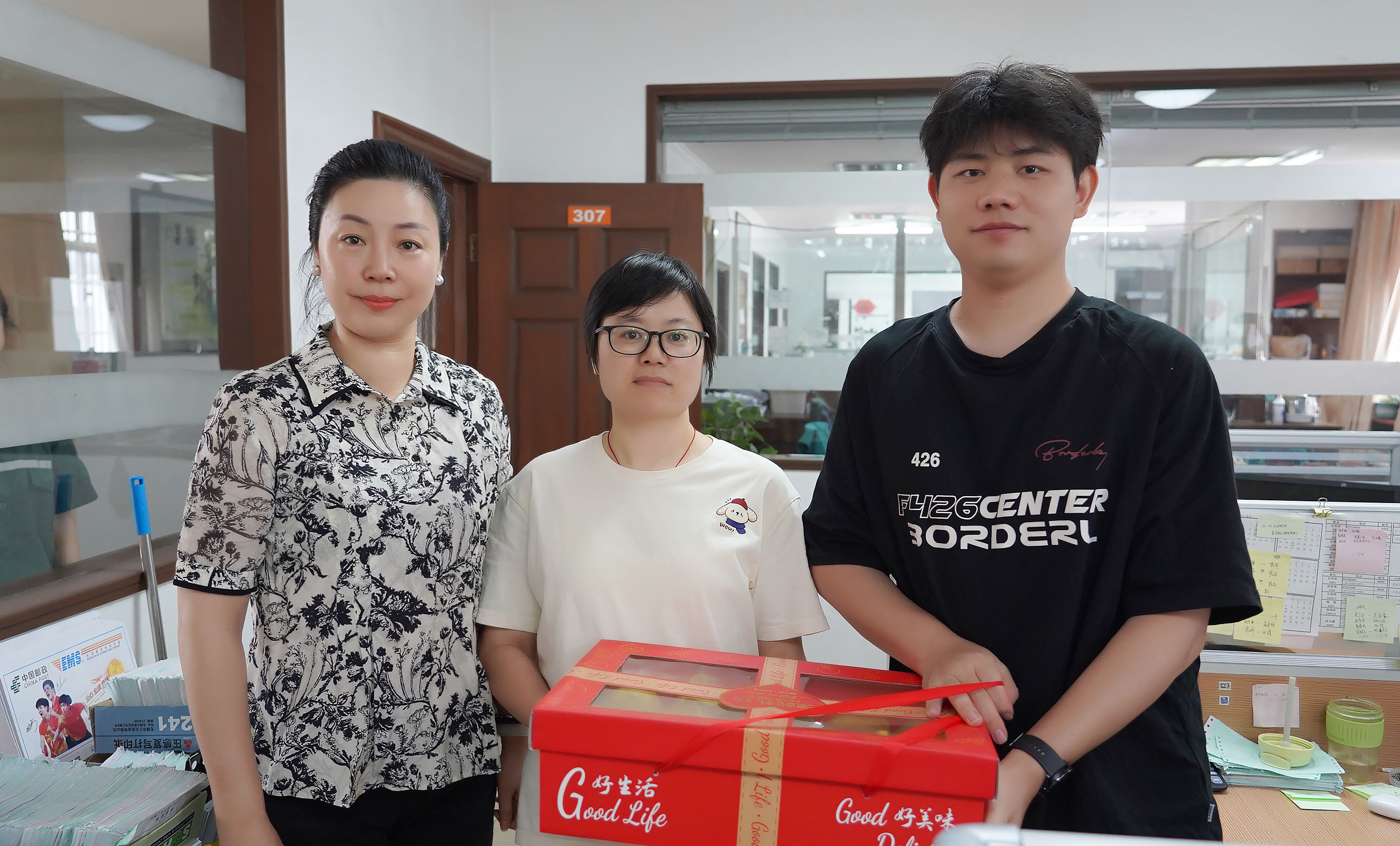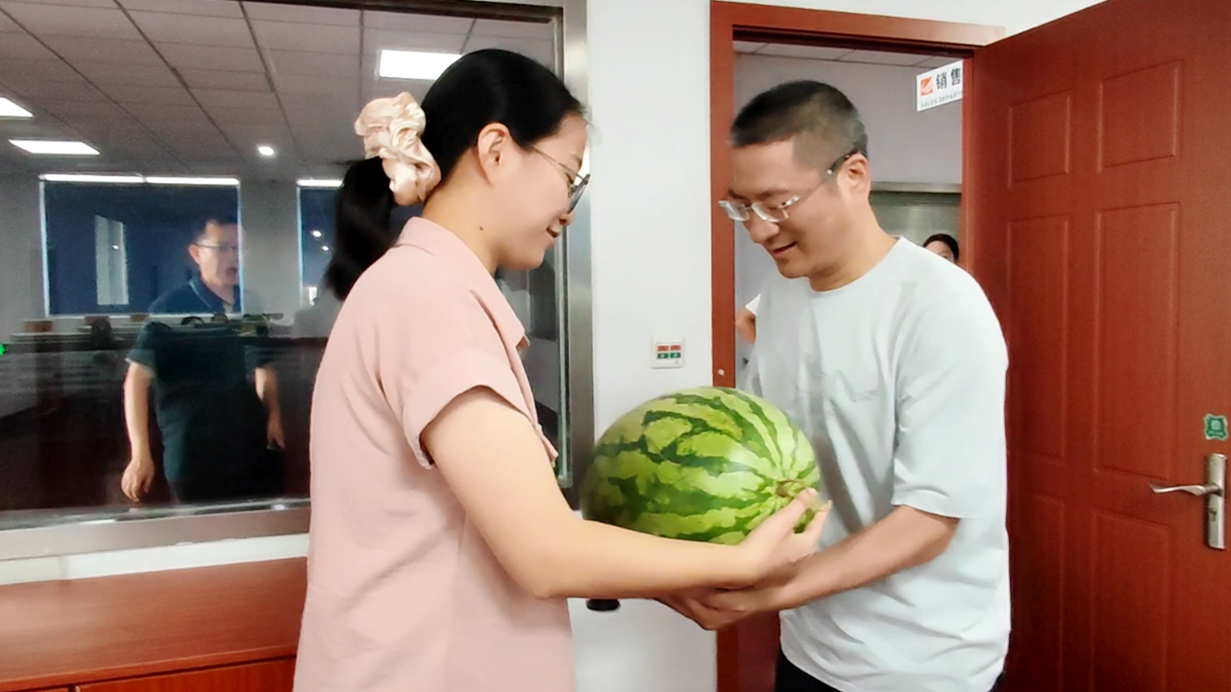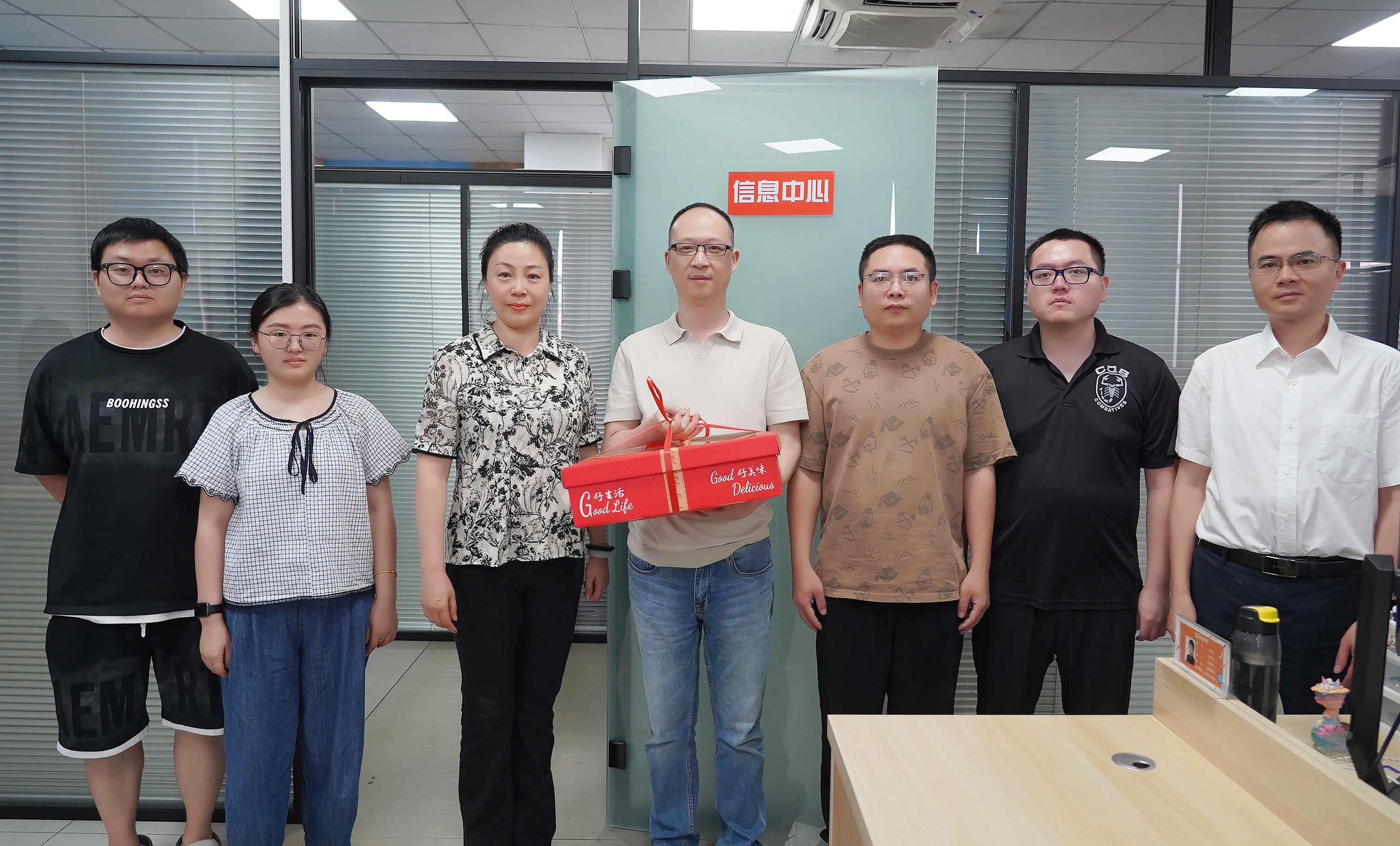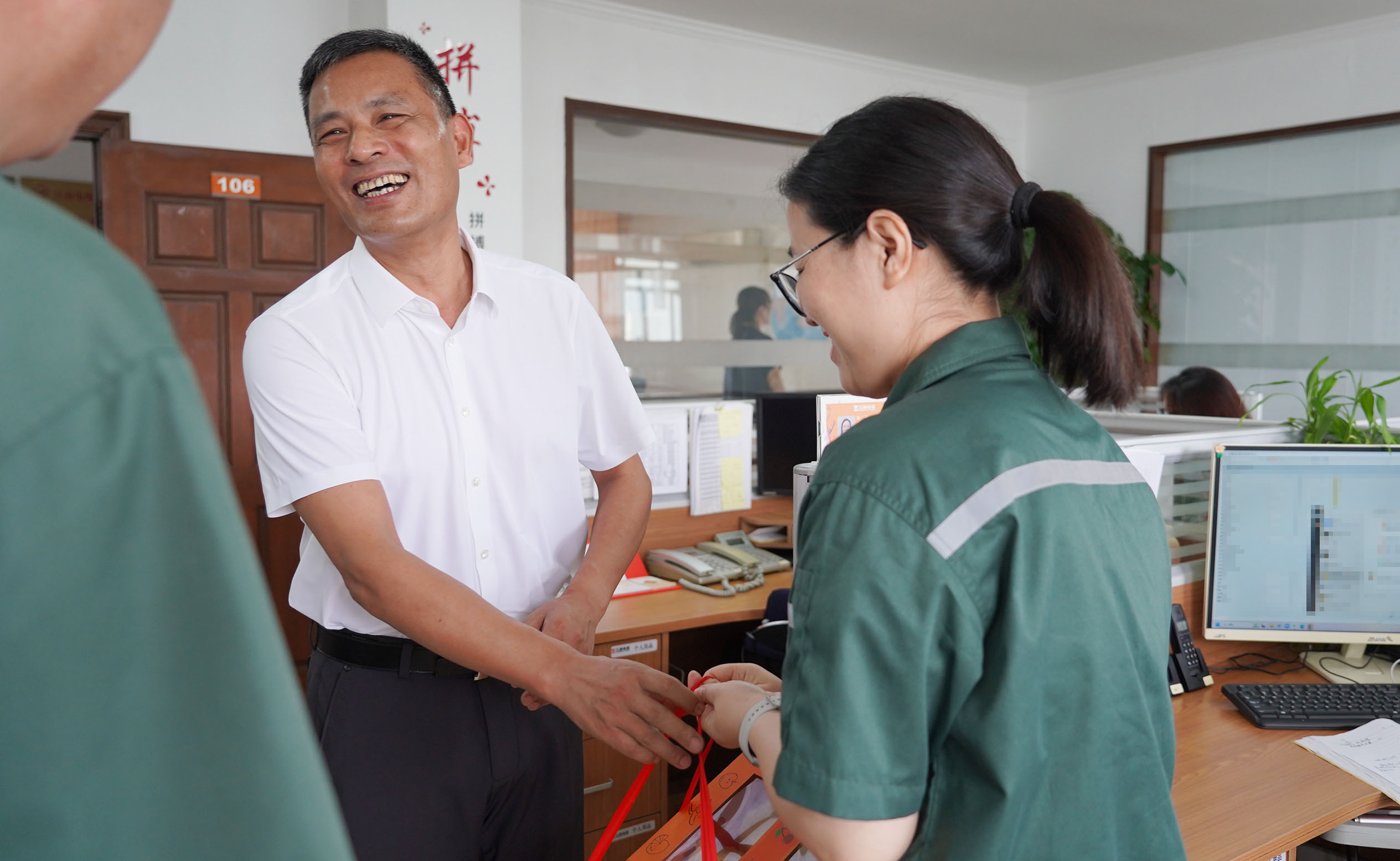運營總經理蔣君西、副總經理芮一云、總經理助理胡亞紅赴辦公樓送清涼