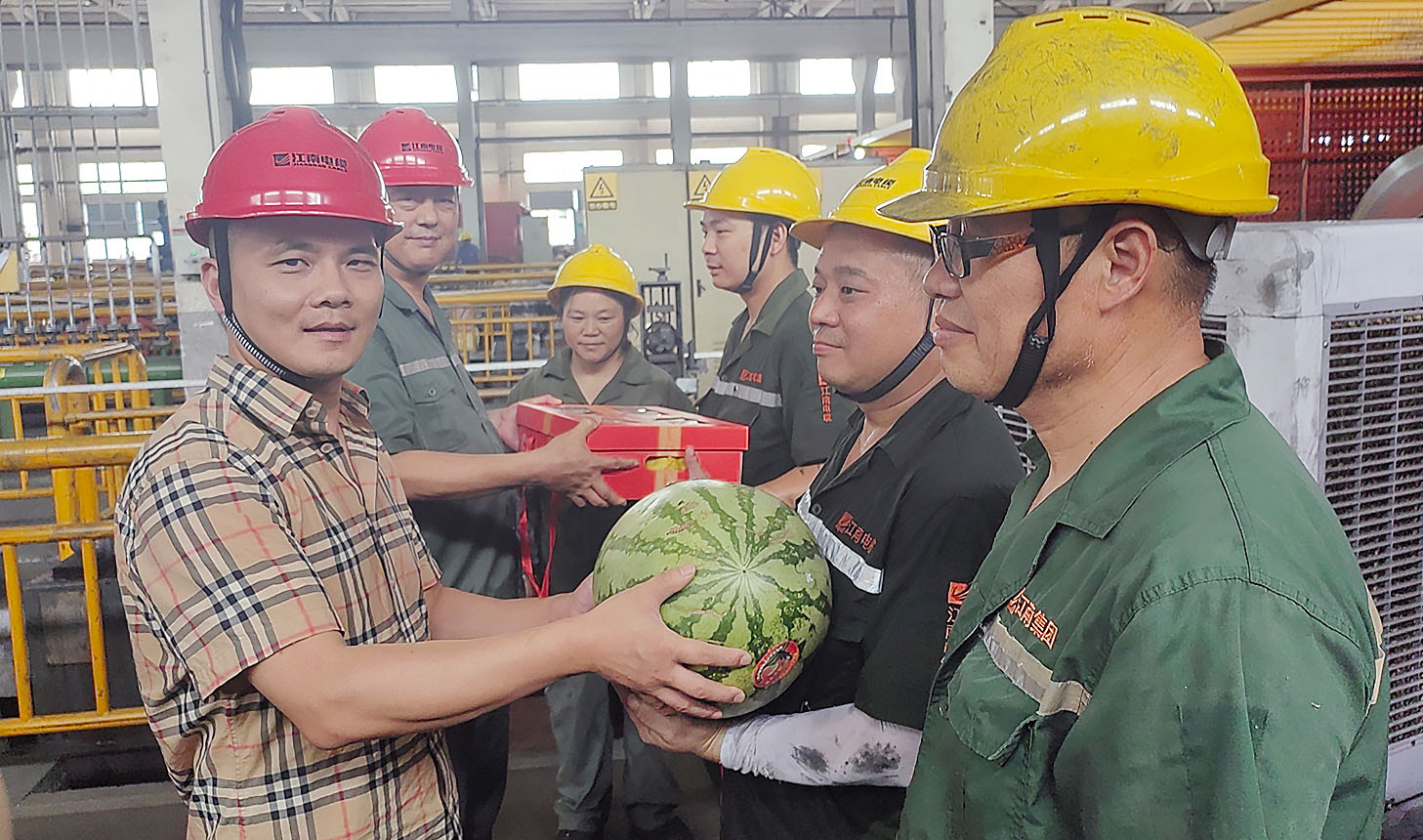 夏日炎炎,暑氣蒸騰。為切實做好高溫時節(jié)安全生產和員工關愛工作,近日,公司董事長儲輝、運營總經理蔣君西帶領領導班子成員深入車間一線與后勤部門,開展“情系員工 夏送清涼”慰問活動,為不畏酷暑、堅守崗位、辛勤奉獻的員工送上關懷與問候。