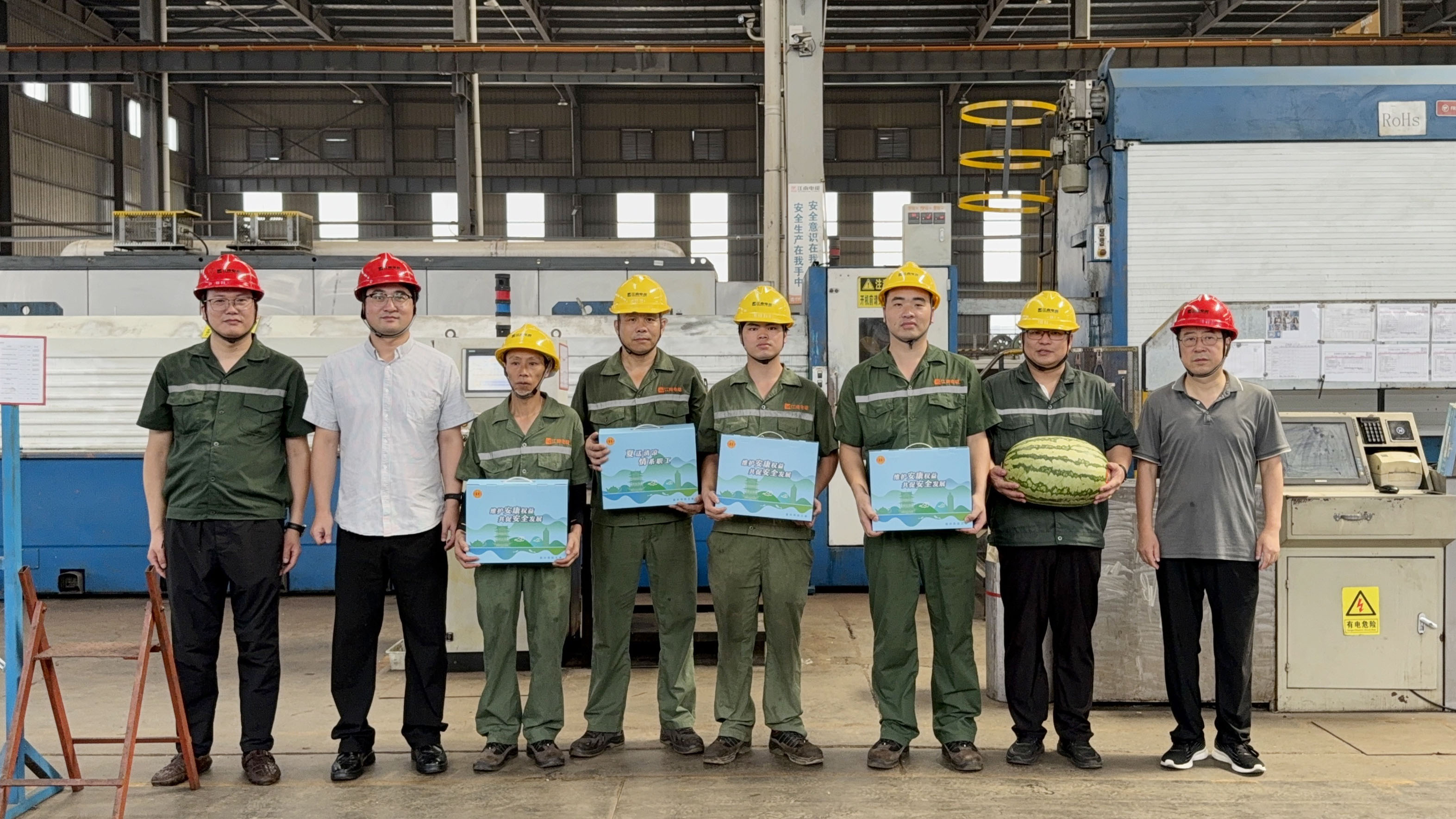 副總經理曹順康、綜合事業(yè)部總經理丁作為赴特纜分廠送清涼